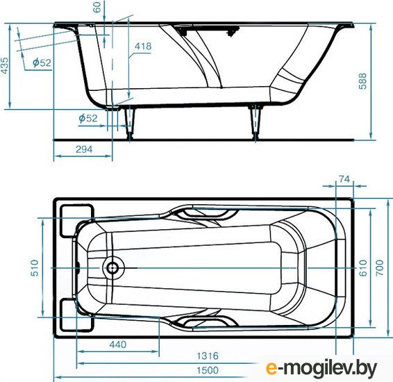 Чугунная ванна Универсал 150 прямоугольная — это прочность, надежность и долговечность. Она не трескается, не царапается, не боится коррозии. Ванна из чугуна длительное время держит тепло, поэтому отпадает необходимость время от времени подливать горячую воду. Чугун обладает хорошей шумоизоляцией: всплески воды будут не слышны. Чтобы сохранить белый цвет эмалевого покрытия, можно использовать любую бытовую химию.