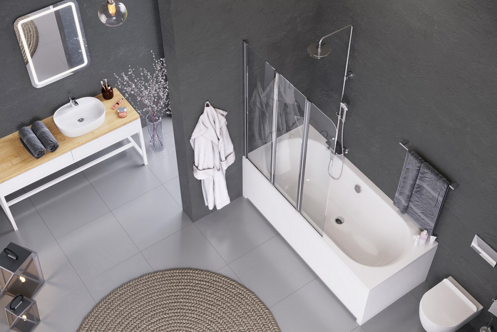 - распашными, очень популярны среди населения. Можно устанавливать как на ванну, так и на душевую кабину.