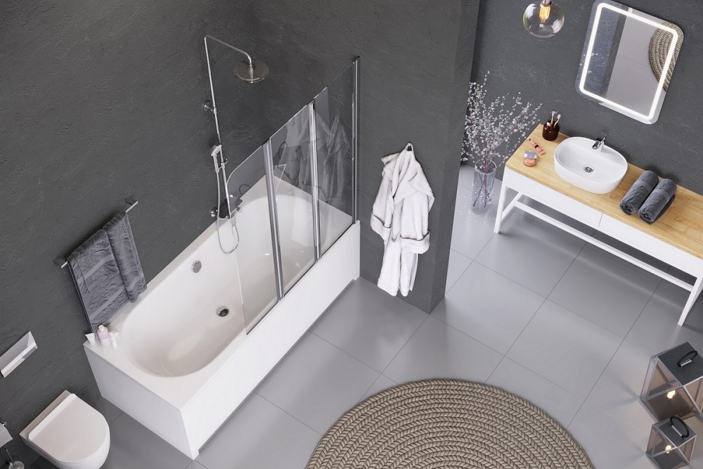 - распашными, очень популярны среди населения. Можно устанавливать как на ванну, так и на душевую кабину.