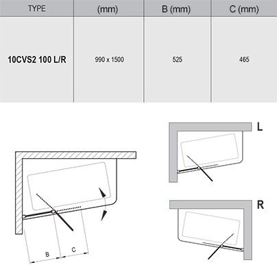 Шторка на ванну Ravak 10CVS2-100 R профиль полированный алюминий, стекло Transparent к ваннам 10°