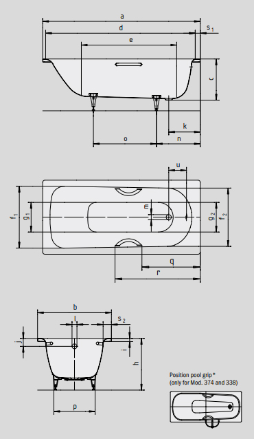 Ванна стальная Kaldewei Saniform Plus 170*73*41 пристенно-фронтальная, с покрытием Easy-Clean, с отверстием для ручек