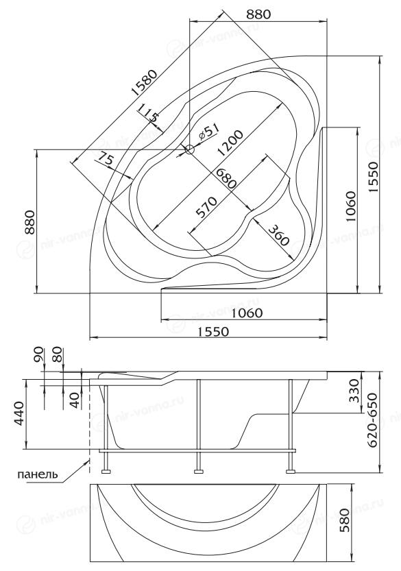 Акриловая ванна 1 Marka 155 четверть круга отвечает тенденциям современной сантехники. Она отличается небольшим весом, комфортом и безопасностью. Поставляется в комплекте с металлическим каркасом. Акрил обладает низкой теплопроводностью. Вода в такой ванне будет остывать очень медленно.