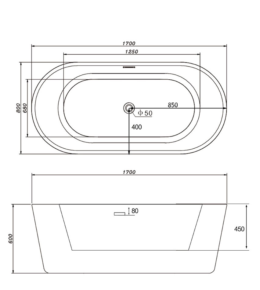Акриловая ванна ABBER AB9209 170*80