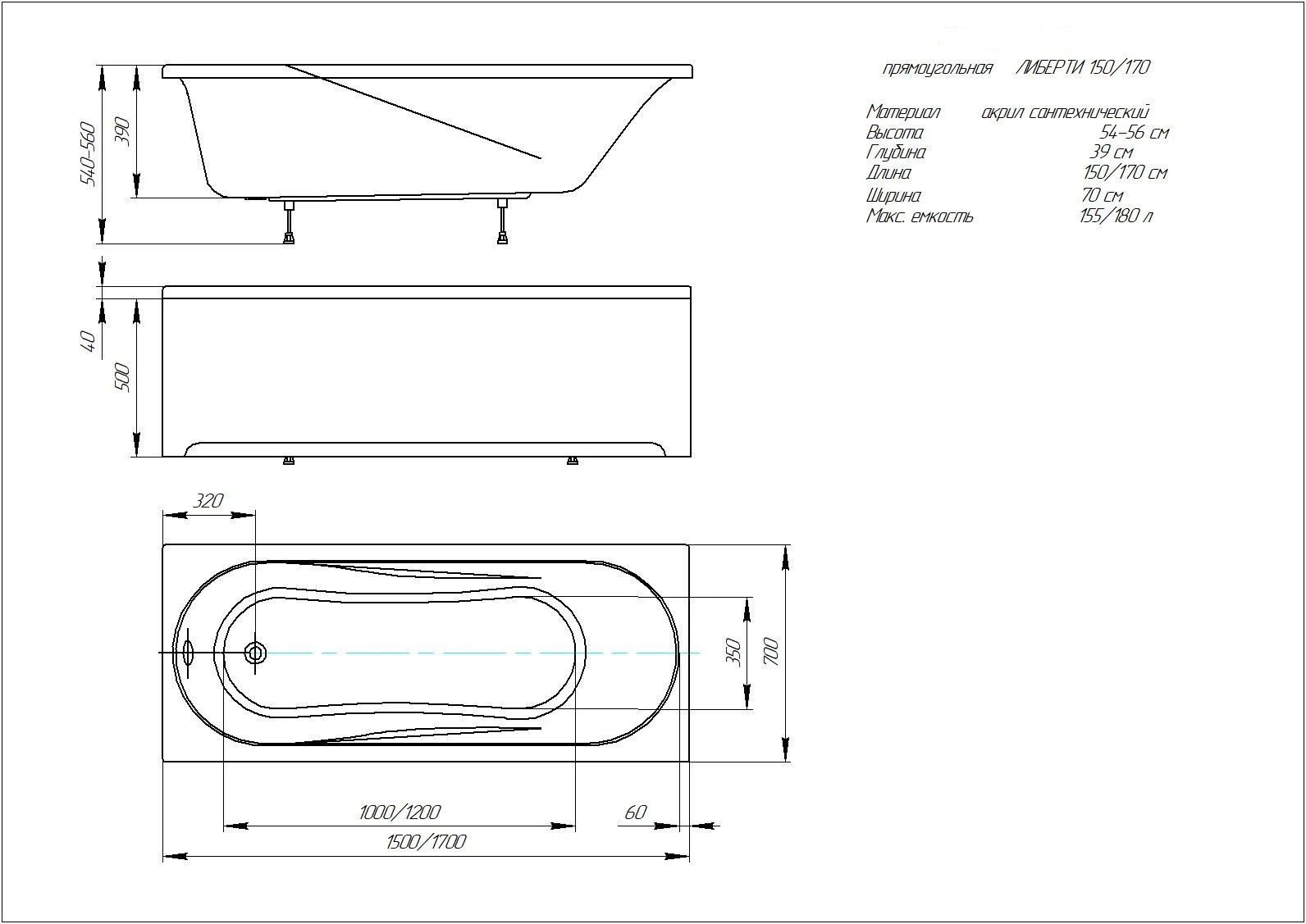 Акриловая ванна Aquatek Либерти Lifestyle 150х70 BER150-0000001