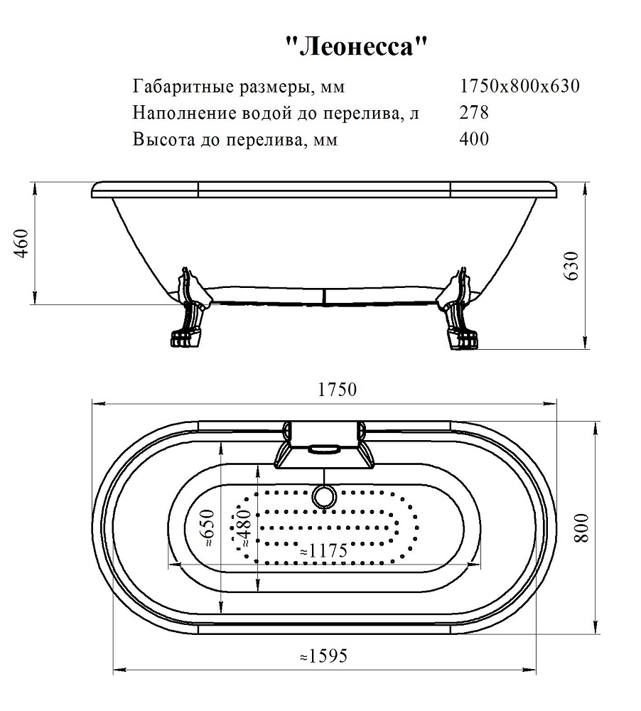 Акриловая ванна Fra Grande Леонесса 175*80 (хром, ножки лилия)