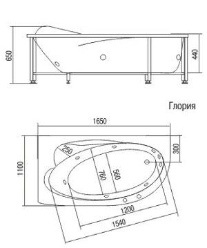 Акриловая ванна Глория 165*110 левая