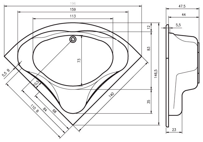 Акриловая ванна Riho 140 четверть круга отвечает тенденциям современной сантехники. Она отличается небольшим весом, комфортом и безопасностью. Поставляется в комплекте с металлическим каркасом. Акрил обладает низкой теплопроводностью. Вода в такой ванне будет остывать очень медленно.