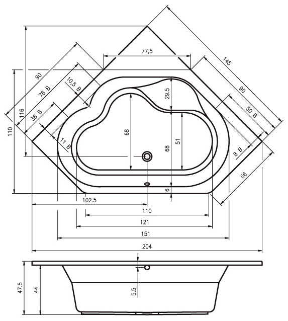 Акриловая ванна Riho 145 нестандартная отвечает тенденциям современной сантехники. Она отличается небольшим весом, комфортом и безопасностью. Поставляется в комплекте с металлическим каркасом. Акрил обладает низкой теплопроводностью. Вода в такой ванне будет остывать очень медленно.