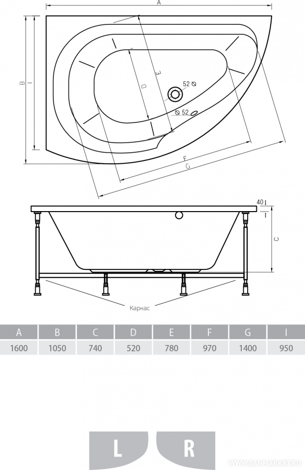 DALLAS 160х105 L ALPEN Ванна