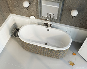 Овальная форма встречается реже, чем стандартные прямоугольные модели. Отдельностоящие овальные ванны прекрасно выглядят в больших комнатах и служат центральным элементом интерьера. Овальные ванны различаются по размеру — длине, ширине и глубине — и подходят практически для любой комнаты.