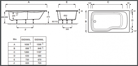 Ванна акриловая 170х90 см Jacob Delafon Bain Douche MALICE E6D065L-00, левая