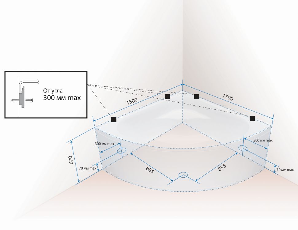 Акриловая ванна 1ACReal 150 четверть круга отвечает тенденциям современной сантехники. Она отличается небольшим весом, комфортом и безопасностью. Поставляется в комплекте с металлическим каркасом. Акрил обладает низкой теплопроводностью. Вода в такой ванне будет остывать очень медленно.