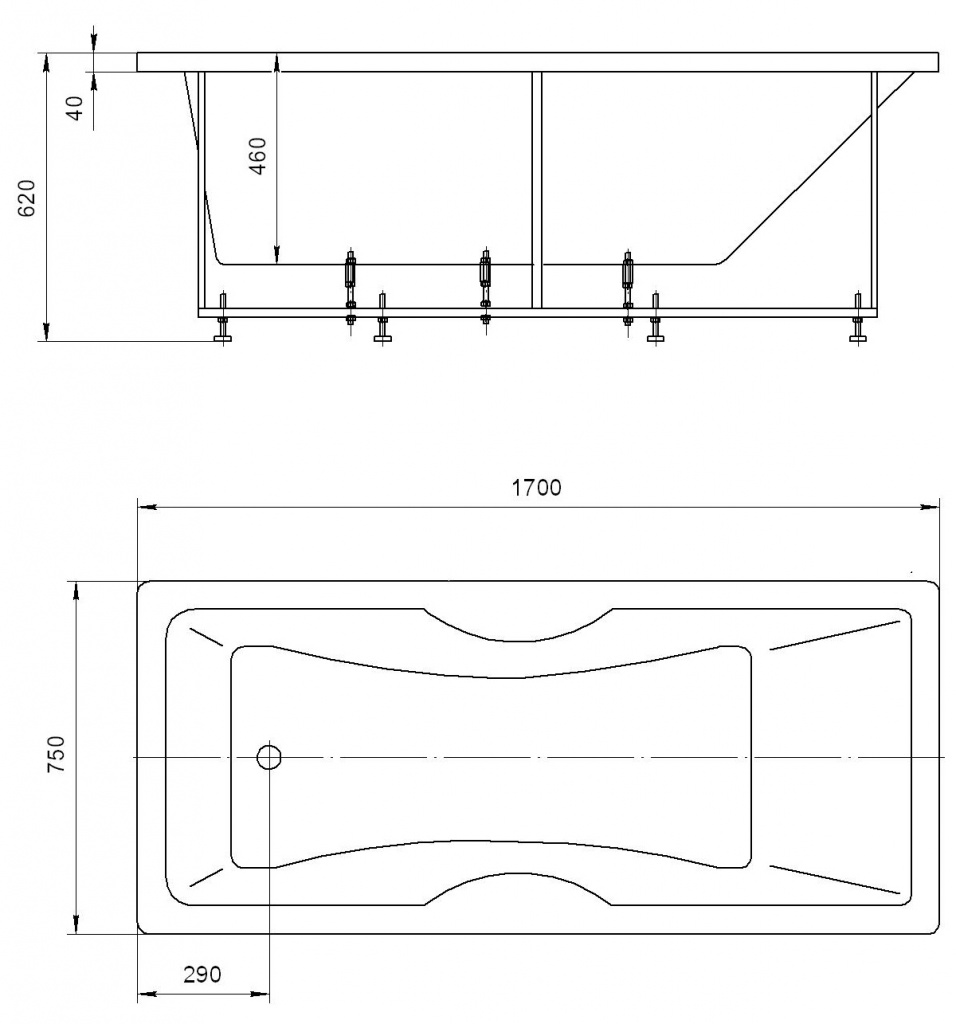 Ванна акриловая АКВАТЕК Феникс  170х75