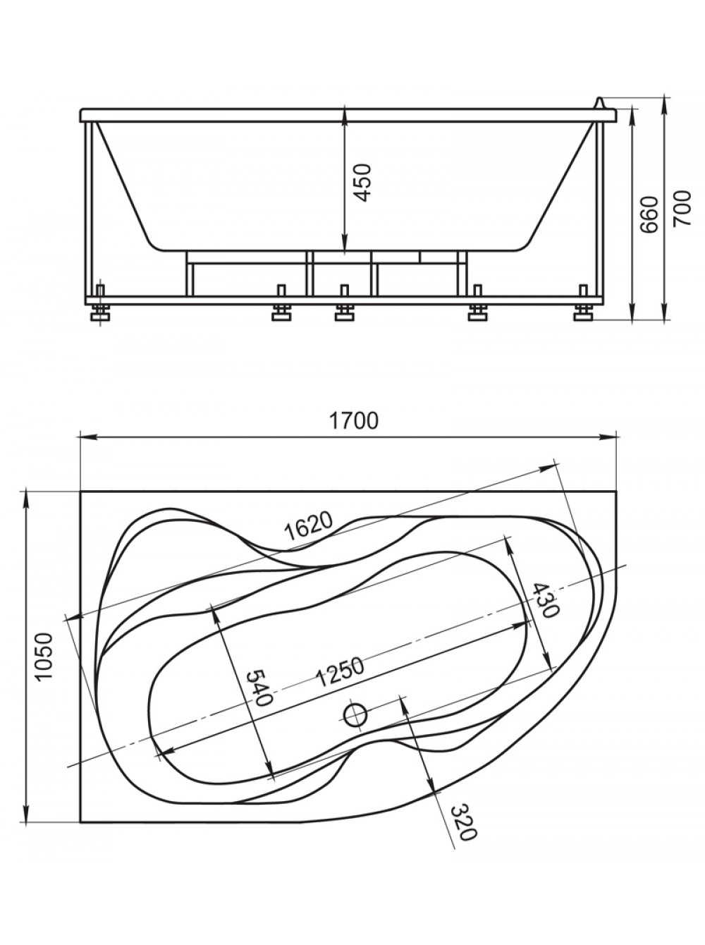 Ванна акриловая АКВАТЕК Вега 170х105 левая