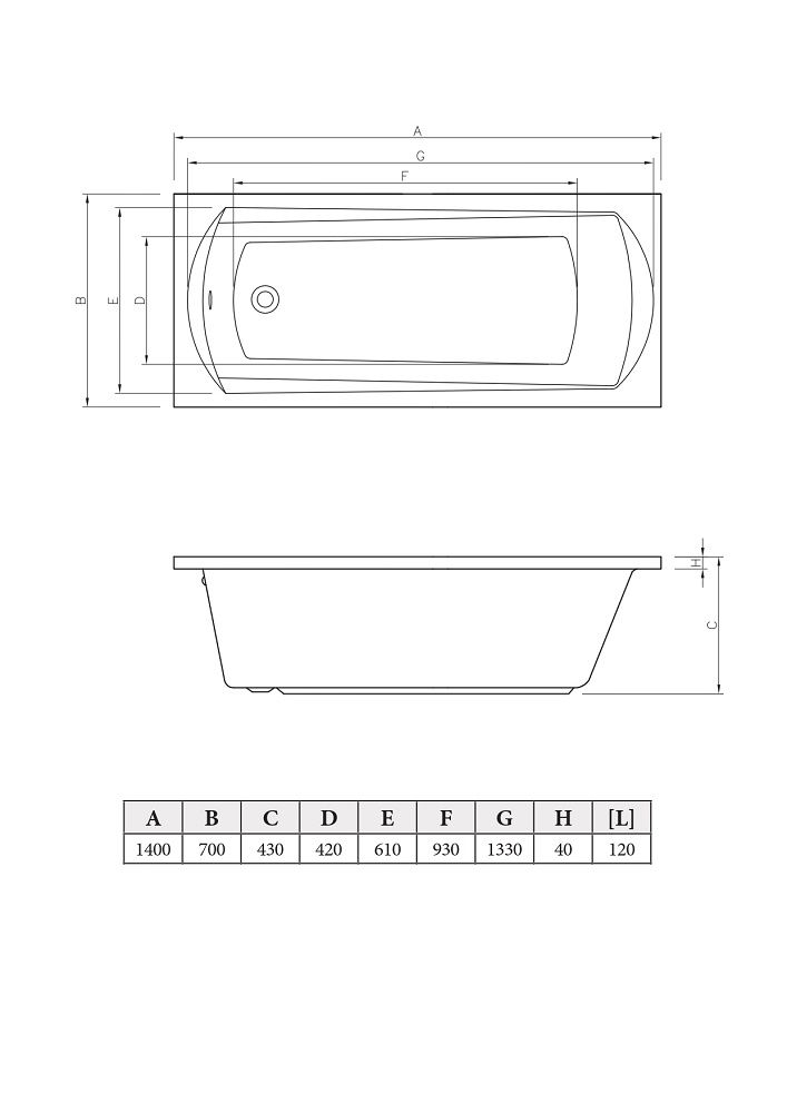 Ванна акриловая C-Bath Clio 140*70*43