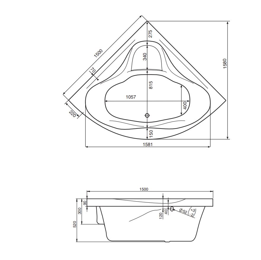 Акриловая ванна Santek 150 четверть круга отвечает тенденциям современной сантехники. Она отличается небольшим весом, комфортом и безопасностью. Поставляется в комплекте с металлическим каркасом. Акрил обладает низкой теплопроводностью. Вода в такой ванне будет остывать очень медленно.