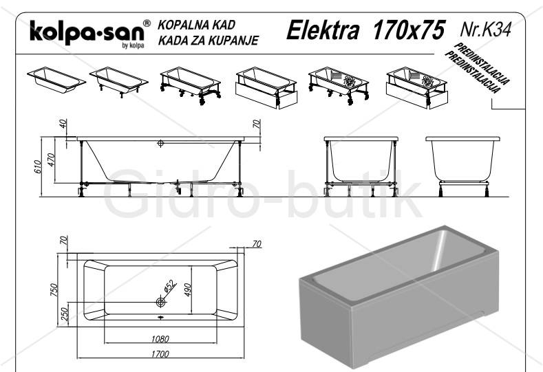 Ванна Kolpa-san ELEKTRA 170x75
