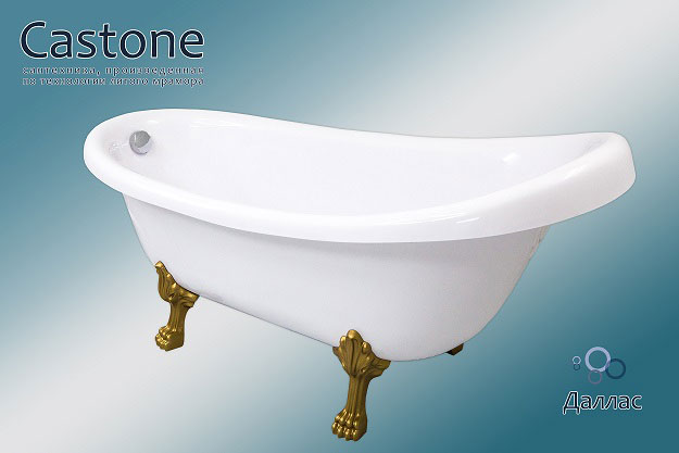 Ванна из искусственного камня Castone 170 овальная подкупает пользователя отличными эксплуатационными свойствами, показателями долговечности и прочности. Ванны отличаются следующими преимуществами: огромный ассортимент размеров и форм, простота монтажа, безопасность и комфорт. В отличие от природного материала, ванны из искусственного камня имеют небольшую теплоемкость, поэтому вода не так быстро остывает. Поверхность более приятная на ощупь, чем мраморная. Точно откалиброванная толщина стенок снижает шум при наборе воды. Высокая прочность конструкций позволяет установить ванны на штатные ножки без использования металлических каркасов и дополнительных крепежей в стену. Материал неприхотлив в уходе, не впитывает влагу, устойчив к химическим веществам и механическим повреждениям. Очистить ванну от налета и грязи можно с помощью бытовых чистящих средств и губки. Искусственный камень является диэлектриком и не проводит электрический ток. Большой выбор размеров, форм и цветовых решений позволит воплотить в реальность самые смелые и необычные дизайнерские идеи.