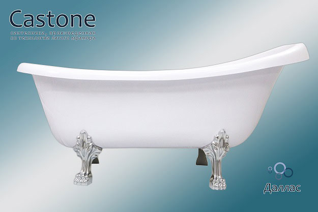 Ванна из искусственного камня Castone 170 овальная подкупает пользователя отличными эксплуатационными свойствами, показателями долговечности и прочности. Ванны отличаются следующими преимуществами: огромный ассортимент размеров и форм, простота монтажа, безопасность и комфорт. В отличие от природного материала, ванны из искусственного камня имеют небольшую теплоемкость, поэтому вода не так быстро остывает. Поверхность более приятная на ощупь, чем мраморная. Точно откалиброванная толщина стенок снижает шум при наборе воды. Высокая прочность конструкций позволяет установить ванны на штатные ножки без использования металлических каркасов и дополнительных крепежей в стену. Материал неприхотлив в уходе, не впитывает влагу, устойчив к химическим веществам и механическим повреждениям. Очистить ванну от налета и грязи можно с помощью бытовых чистящих средств и губки. Искусственный камень является диэлектриком и не проводит электрический ток. Большой выбор размеров, форм и цветовых решений позволит воплотить в реальность самые смелые и необычные дизайнерские идеи.