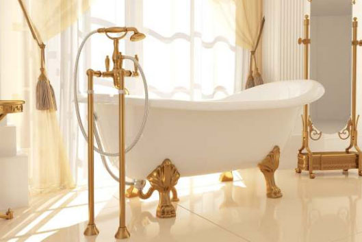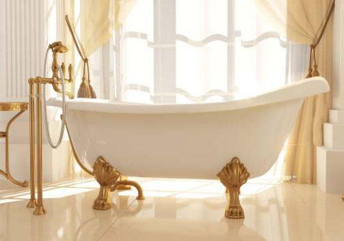 Ванна из искусственного камня Castone Даллас 170*82,7 ножки золото, слив-перелив внешний Vicario золото