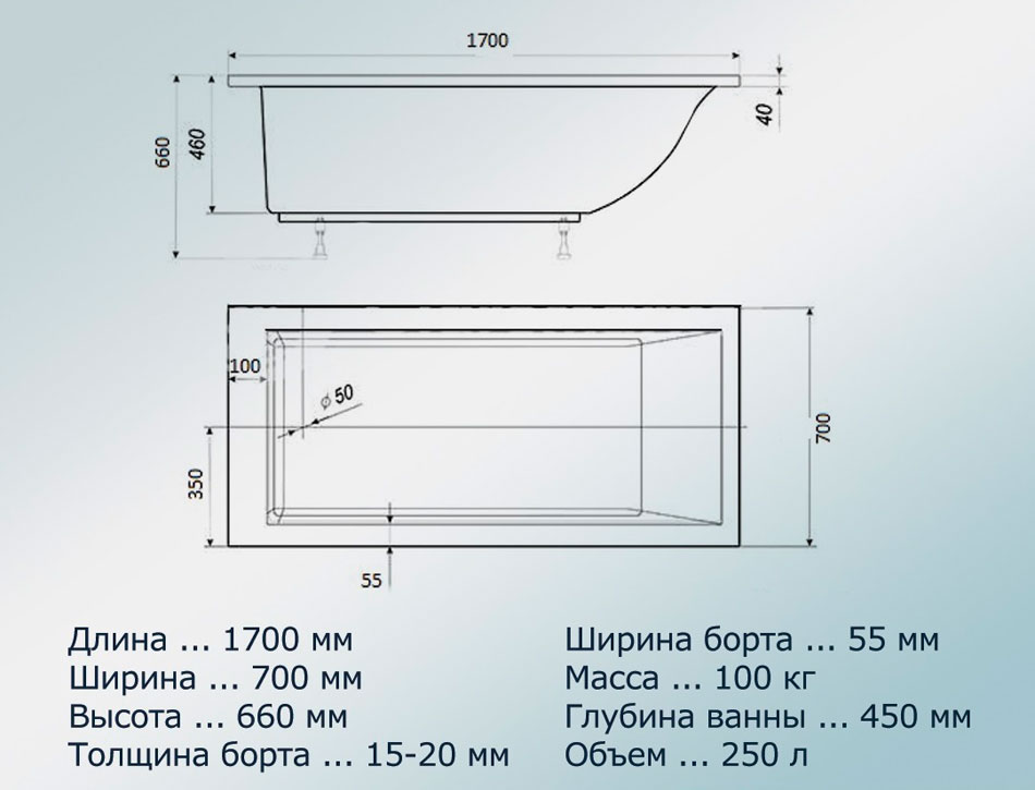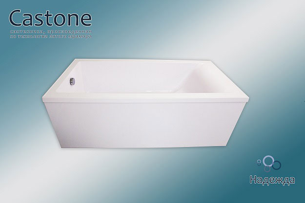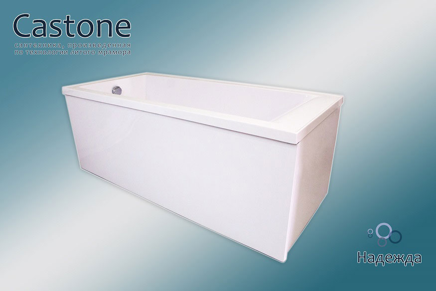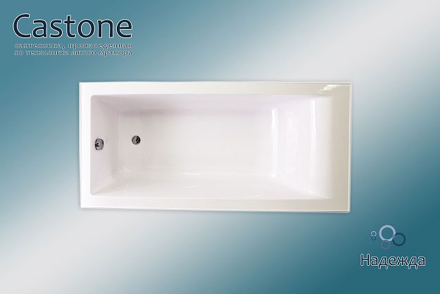 Ванна из искусственного камня Castone 170 прямоугольная подкупает пользователя отличными эксплуатационными свойствами, показателями долговечности и прочности. Ванны отличаются следующими преимуществами: огромный ассортимент размеров и форм, простота монтажа, безопасность и комфорт. В отличие от природного материала, ванны из искусственного камня имеют небольшую теплоемкость, поэтому вода не так быстро остывает. Поверхность более приятная на ощупь, чем мраморная. Точно откалиброванная толщина стенок снижает шум при наборе воды. Высокая прочность конструкций позволяет установить ванны на штатные ножки без использования металлических каркасов и дополнительных крепежей в стену. Материал неприхотлив в уходе, не впитывает влагу, устойчив к химическим веществам и механическим повреждениям. Очистить ванну от налета и грязи можно с помощью бытовых чистящих средств и губки. Искусственный камень является диэлектриком и не проводит электрический ток. Большой выбор размеров, форм и цветовых решений позволит воплотить в реальность самые смелые и необычные дизайнерские идеи.