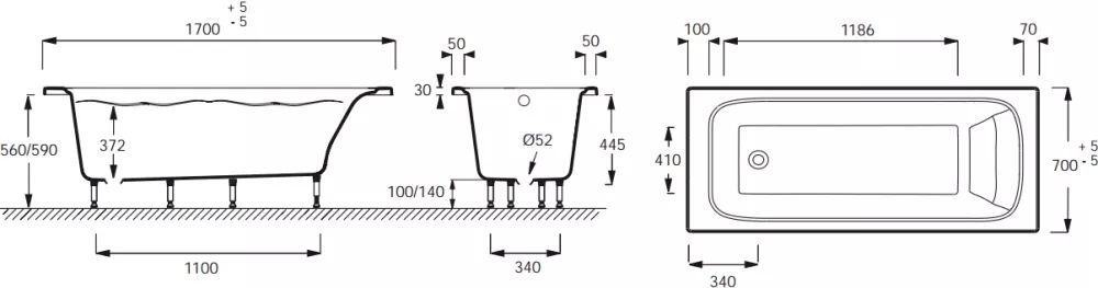 Ванна из искусственного камня Jacob Delafon Elite 170x70 + слив-перелив