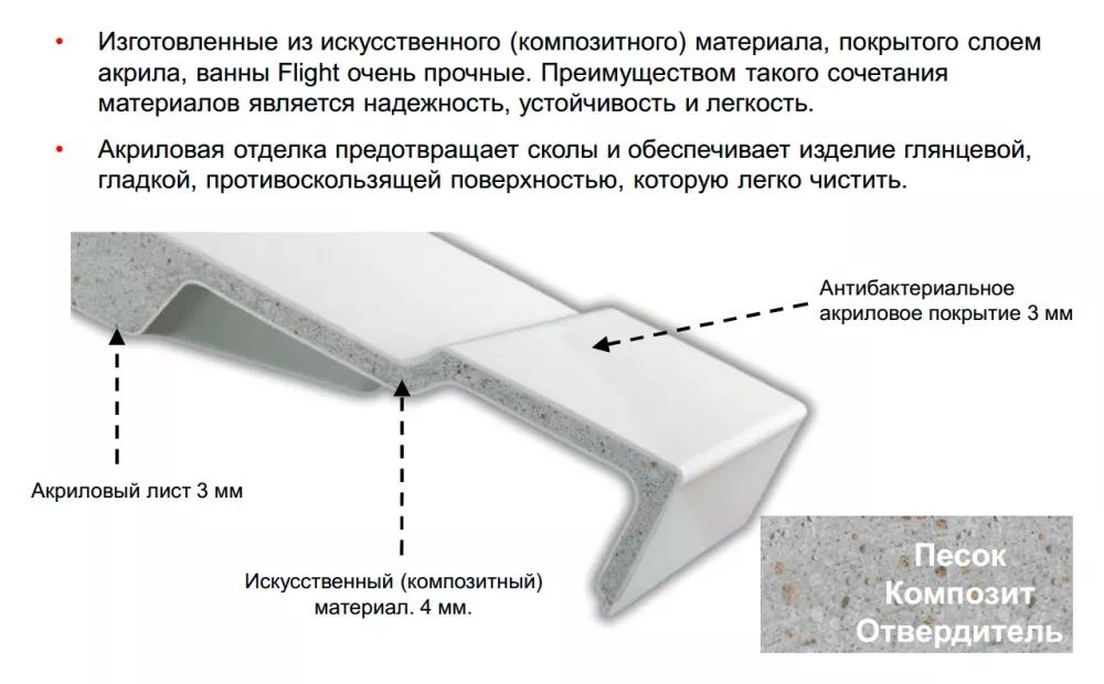 Ванна из искусственного камня Jacob Delafon 180 прямоугольная подкупает пользователя отличными эксплуатационными свойствами, показателями долговечности и прочности. Ванны отличаются следующими преимуществами: огромный ассортимент размеров и форм, простота монтажа, безопасность и комфорт. В отличие от природного материала, ванны из искусственного камня имеют небольшую теплоемкость, поэтому вода не так быстро остывает. Поверхность более приятная на ощупь, чем мраморная. Точно откалиброванная толщина стенок снижает шум при наборе воды. Высокая прочность конструкций позволяет установить ванны на штатные ножки без использования металлических каркасов и дополнительных крепежей в стену. Материал неприхотлив в уходе, не впитывает влагу, устойчив к химическим веществам и механическим повреждениям. Очистить ванну от налета и грязи можно с помощью бытовых чистящих средств и губки. Искусственный камень является диэлектриком и не проводит электрический ток. Большой выбор размеров, форм и цветовых решений позволит воплотить в реальность самые смелые и необычные дизайнерские идеи.