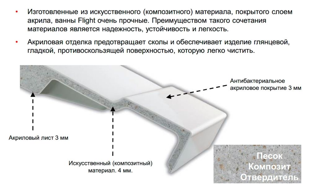 Ванна из искусственного камня Jacob Delafon 190 прямоугольная подкупает пользователя отличными эксплуатационными свойствами, показателями долговечности и прочности. Ванны отличаются следующими преимуществами: огромный ассортимент размеров и форм, простота монтажа, безопасность и комфорт. В отличие от природного материала, ванны из искусственного камня имеют небольшую теплоемкость, поэтому вода не так быстро остывает. Поверхность более приятная на ощупь, чем мраморная. Точно откалиброванная толщина стенок снижает шум при наборе воды. Высокая прочность конструкций позволяет установить ванны на штатные ножки без использования металлических каркасов и дополнительных крепежей в стену. Материал неприхотлив в уходе, не впитывает влагу, устойчив к химическим веществам и механическим повреждениям. Очистить ванну от налета и грязи можно с помощью бытовых чистящих средств и губки. Искусственный камень является диэлектриком и не проводит электрический ток. Большой выбор размеров, форм и цветовых решений позволит воплотить в реальность самые смелые и необычные дизайнерские идеи.