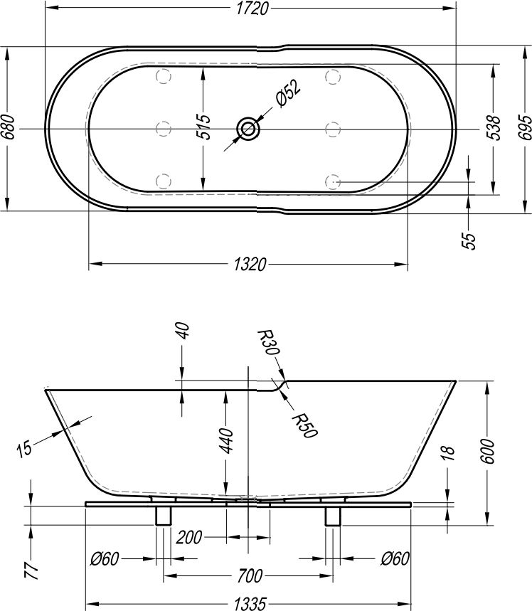 Ванна из искусственного камня Kolpa-San 172 овальная подкупает пользователя отличными эксплуатационными свойствами, показателями долговечности и прочности. Ванны отличаются следующими преимуществами: огромный ассортимент размеров и форм, простота монтажа, безопасность и комфорт. В отличие от природного материала, ванны из искусственного камня имеют небольшую теплоемкость, поэтому вода не так быстро остывает. Поверхность более приятная на ощупь, чем мраморная. Точно откалиброванная толщина стенок снижает шум при наборе воды. Высокая прочность конструкций позволяет установить ванны на штатные ножки без использования металлических каркасов и дополнительных крепежей в стену. Материал неприхотлив в уходе, не впитывает влагу, устойчив к химическим веществам и механическим повреждениям. Очистить ванну от налета и грязи можно с помощью бытовых чистящих средств и губки. Искусственный камень является диэлектриком и не проводит электрический ток. Большой выбор размеров, форм и цветовых решений позволит воплотить в реальность самые смелые и необычные дизайнерские идеи.