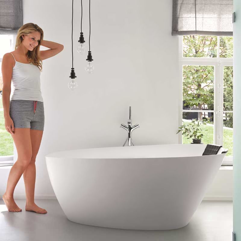 Ванна из искусственного камня Riho 158 овальная подкупает пользователя отличными эксплуатационными свойствами, показателями долговечности и прочности. Ванны отличаются следующими преимуществами: огромный ассортимент размеров и форм, простота монтажа, безопасность и комфорт. В отличие от природного материала, ванны из искусственного камня имеют небольшую теплоемкость, поэтому вода не так быстро остывает. Поверхность более приятная на ощупь, чем мраморная. Точно откалиброванная толщина стенок снижает шум при наборе воды. Высокая прочность конструкций позволяет установить ванны на штатные ножки без использования металлических каркасов и дополнительных крепежей в стену. Материал неприхотлив в уходе, не впитывает влагу, устойчив к химическим веществам и механическим повреждениям. Очистить ванну от налета и грязи можно с помощью бытовых чистящих средств и губки. Искусственный камень является диэлектриком и не проводит электрический ток. Большой выбор размеров, форм и цветовых решений позволит воплотить в реальность самые смелые и необычные дизайнерские идеи.